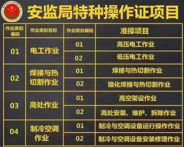 一、應(yīng)急管理廳(原安監(jiān)局)特種操作證俗稱“”上崗證”,證書(shū)每3年進(jìn)行一次復(fù)審、6年換證。常見(jiàn)的低壓電工和高壓電工都是由應(yīng)急管理廳頒發(fā)的。